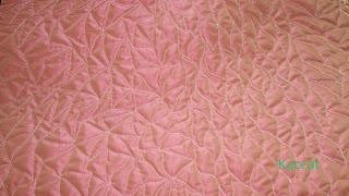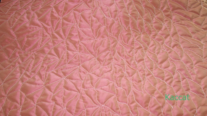 Majd elkezdtem még egyet, ami valahogy átalakult egész mássá, mint ahogy elkezdtem, és terveztem, de elkezdetett zavarni, hogy többször visszamenjek egy vonalon, ezért magától kialakult ez, és most ez a kedvencem (annyira, hogy gyorsan még egy anyag ugyanilyen mintát kapott.) Talán szilánkosnak lehet nevezni, de lényegében csak arra figyeltem, hogy ne kelljen többször átvarrnom, illetve, hogy le legyen zárva a minta, lehetőleg háromszöggel. Nagyon tetszik, mert bár elég jól meg van tűzve, még sem annyira sok mint a kagylózás, mégis jól használható