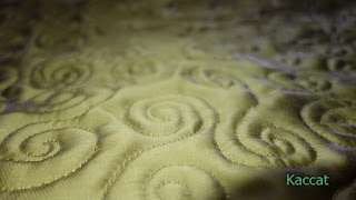 Majd elkezdtem még egyet, ami valahogy átalakult egész mássá, mint ahogy elkezdtem, és terveztem, de elkezdetett zavarni, hogy többször visszamenjek egy vonalon, ezért magától kialakult ez, és most ez a kedvencem (annyira, hogy gyorsan még egy anyag ugyanilyen mintát kapott.) Talán szilánkosnak lehet nevezni, de lényegében csak arra figyeltem, hogy ne kelljen többször átvarrnom, illetve, hogy le legyen zárva a minta, lehetőleg háromszöggel. Nagyon tetszik, mert bár elég jól meg van tűzve, még sem annyira sok mint a kagylózás, mégis jól használható
